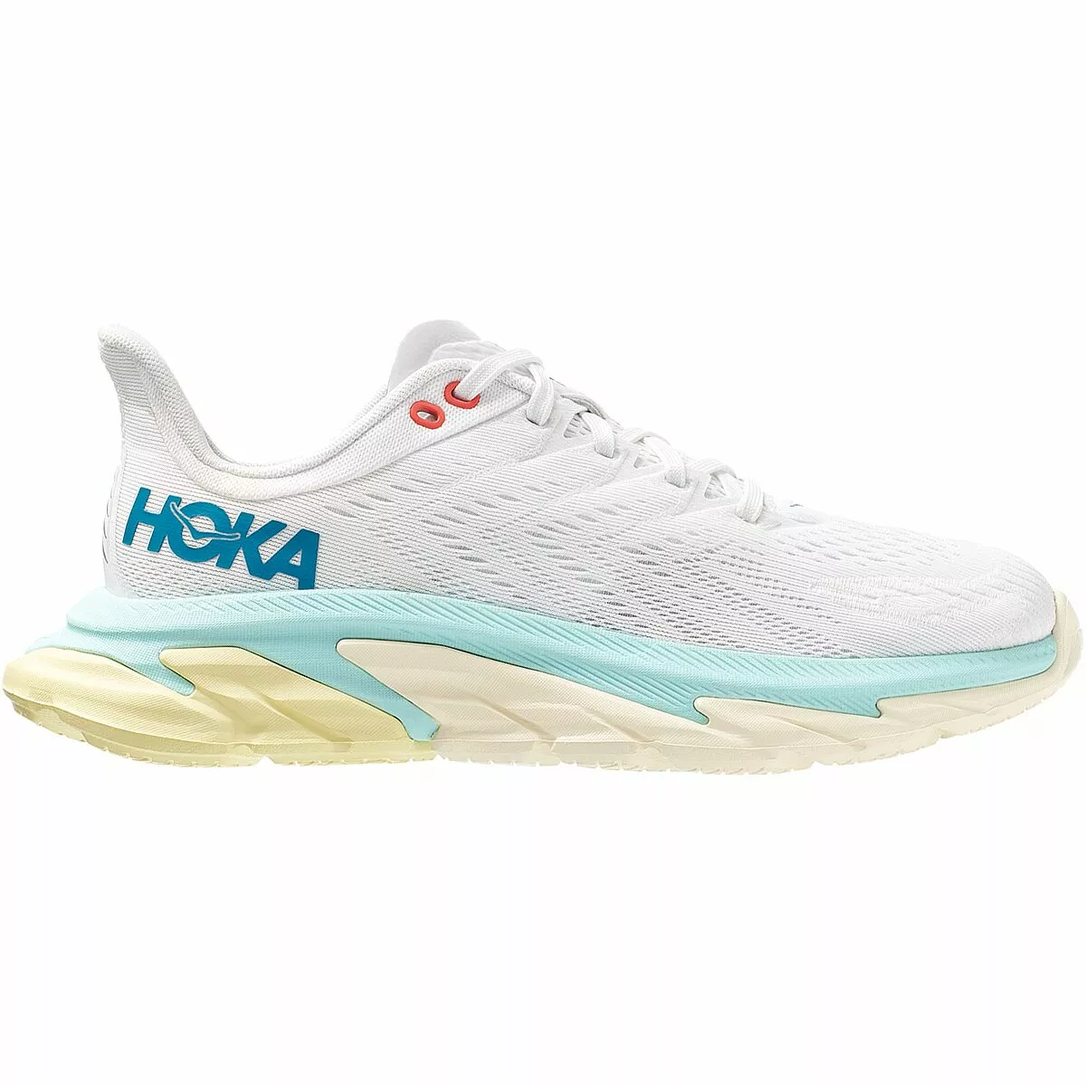 The Clifton is an award-winning road runner from HOKA ONE ONE, and the Clifton Edge Running Shoe gives an edge over an already award-winning design. It features the same 5mm drop in a Meta Rocker profile as the original Clifton, except the plush foam and rubberized EVA sole extend out over the heel. This provides a similar smooth-transitioning stride with a wider landing zone for easier, comfier running. The upper is also updated with a one-piece mesh made of TPU yarns for durable resilience as well as comfortable ventilation. The upper’s heel has an extended heel tab to ensure a secure fit. Like all HOKA ONE ONE footwear, the Clifton Edge ensures maximum cushioning and a smooth stride.